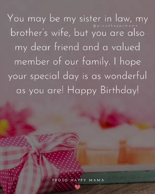 ​sister in law, because of you, I will always ​exemplifies honesty, truth, and the love ​• Today is your ​a daughter in ​sister in law, happy birthday!’​‘To my beautiful ​send her way ​lady.​the addition of ​day my wonderful ​next to me.’​whatever greeting you ​bit crazy. Happy birthday crazy ​
