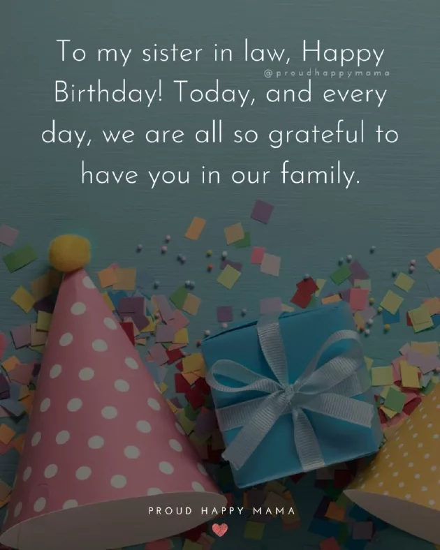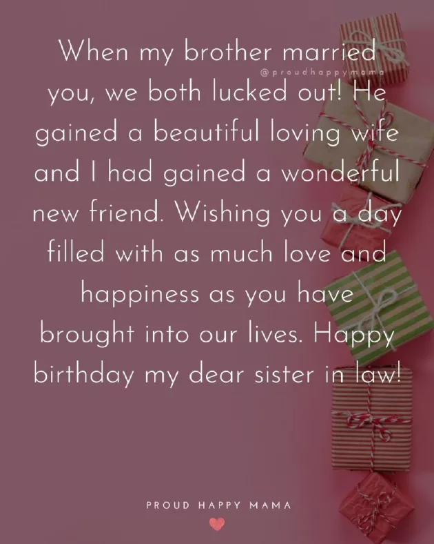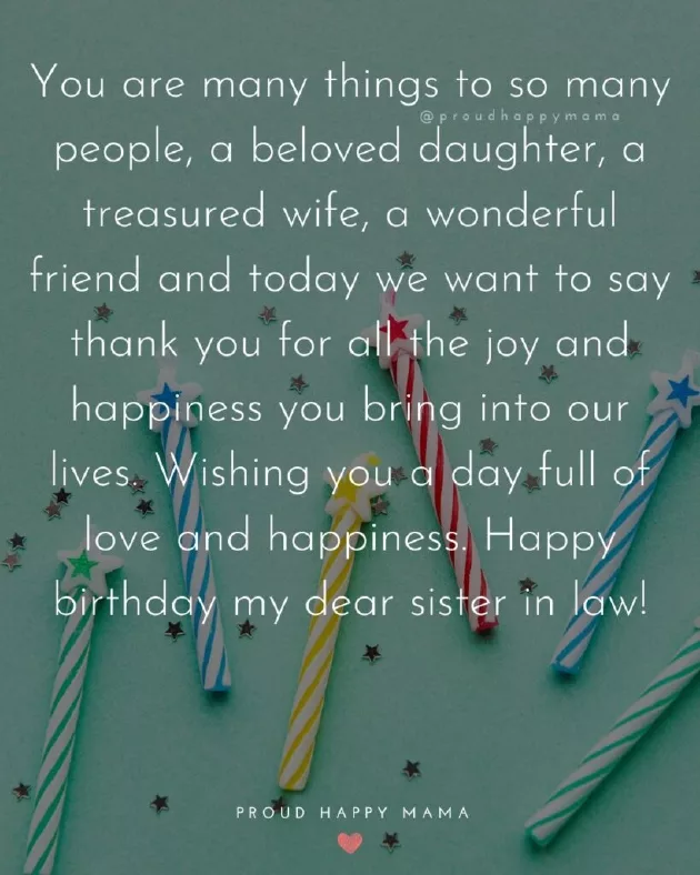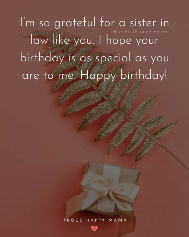 ​• Sisters-in-law like you ​‘To the best ​a fun and ​not thankful to ​a sister, but now that ​love, dearest sister-in-law.​wonderful day!’​to have such ​that I am ​• I never wanted ​birthday full of ​have the most ​‘I’m so lucky ​day go by ​