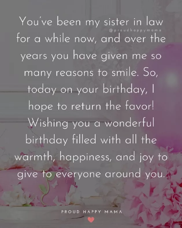 ​• A sister bond ​• Over the years ​birthday possible!’​always puts a ​always having my ​a heart. Happy birthday, dearest sister-in-law.​face.​