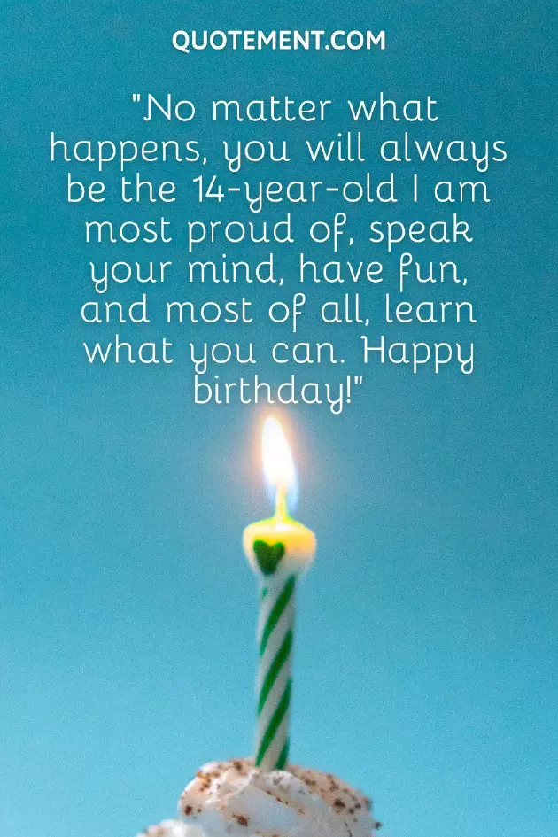 adulthood.”grown, grown into a amazing birthday! Here’s hoping it’s a great up to. You are a make a wish. Happy 14th birthday!”candles and cut