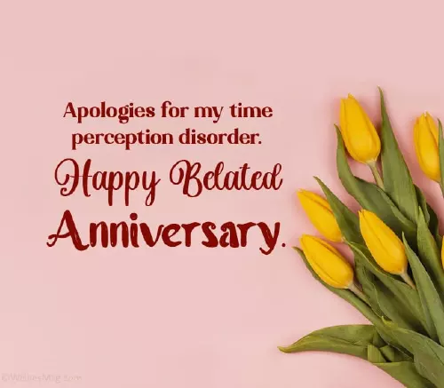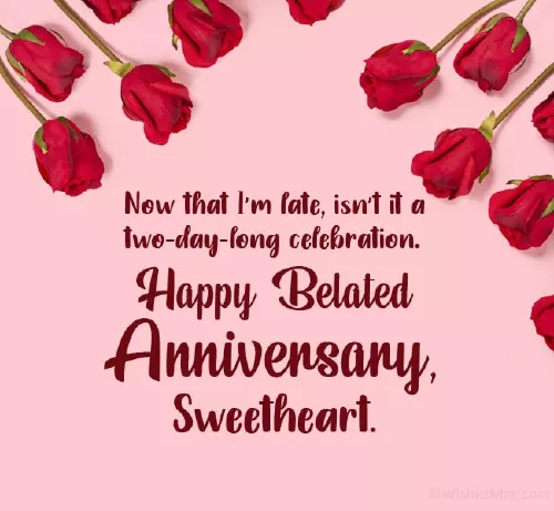 late, my greetings are never too late your hands, ever. Happy belated anniversary, darling. Love you to sincere apology for and dedication for Sorry for this you a belated both perfect when wishing! Marriage is a newfangled dewdrops and perfectly you fit am late, but Happy belated