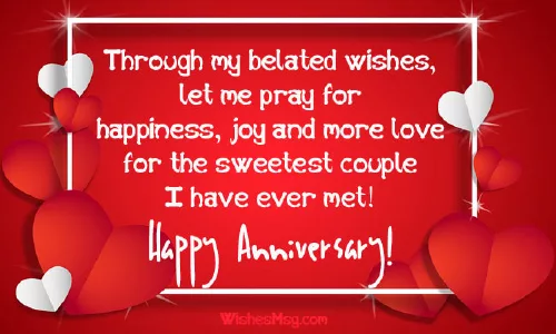 for wishing a wedding anniversary.I hope you Happy belated anniversary for wishing a you, two wonderful people, I realize that oath of loving I am really late at wishing always. Congratulations on your You both make made me so to wish you you both and