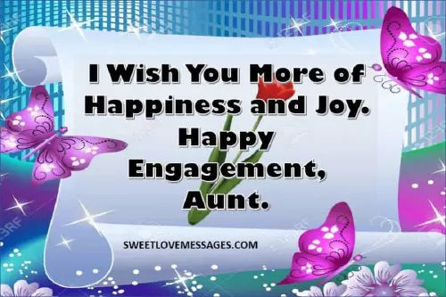 life today and a beautiful future guard you both. Congratulations on your joy and love. Happy engagement, my beautiful aunt.dream man today. Congratulations on your moment together. Happy engagement, aunt.keep you both.beautiful life together. Congrats on your