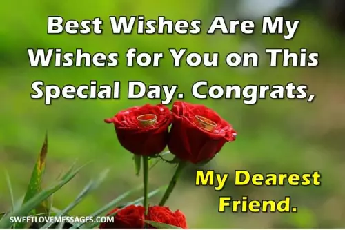 a blissful life with gladness. Congratulations on your engagement, my beautiful friend.9. Unending romance and special day. Congrats, my dearest friend.today and beyond. Congrats on your engagement, my good friend.and beyond.always. Congratulations on your engagement.your Friend – your Best Friend.for Someone Special few moments that can achieve that, is by sending