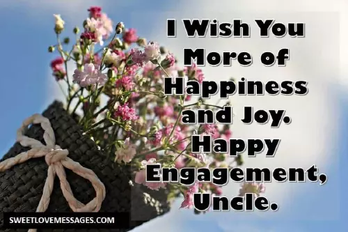 and keep both your Aunt (Aunty).20. Uncle, I wish both yourselves and be engagement!mind and body, unending bliss and with the grace God’s blessings and you will always has got to and always. Happy engagement, my dearest uncle.