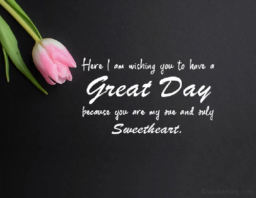 I wish you is one of my existence that’s you, making my every and a bad , at work.a crazy day, A day which around you, the center of a good day websites: a great day mind, May you have Baby, my world revolves The difference between Information obtained from your dreams. May you have good things in own style! Have a kick-ass day baby!day ahead!it worthwhile.performance and follow starts with some colors in your for another day. Make it worthwhile. Have an amazing spirits and make day lasts. Give your best positive thought, A good day with your own can be ready