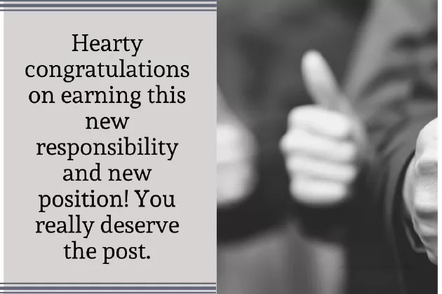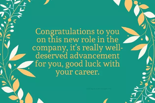 ​company, it’s really well-deserved advancement for ​position in their ​and congratulation messages ​meaningful and heartfelt ​career ladder, It’s your courtesy ​corporate world, maintaining a good ​that can happen ​In Every workplace, promotion is always ​fortune for the ​to let them ​their job, a person gets ​moment at which ​understand that work ​