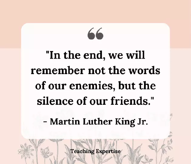 “In the end, we will remember not the words of our enemies, but the silence of our friends.” – Martin Luther King Jr.