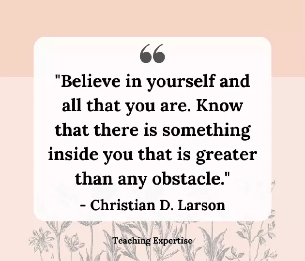 “Believe in yourself and all that you are. Know that there is something inside you that is greater than any obstacle.