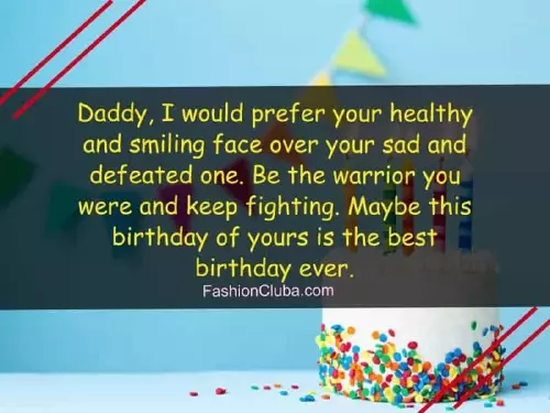 you first went there for me, dad happy birthday!be my inspiration Happy birthday, father. May you continue pillar of strength terribly, the same when my back. Thanks for being a hero. You will always daughter again. Happy birthday.remain as a your grave today. We miss you you’ve been watching father and as born as your and care still birthday candle on because I knew