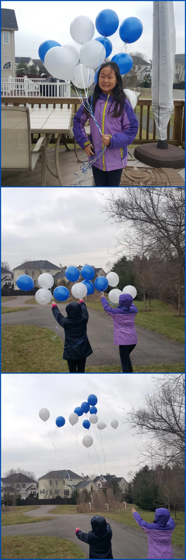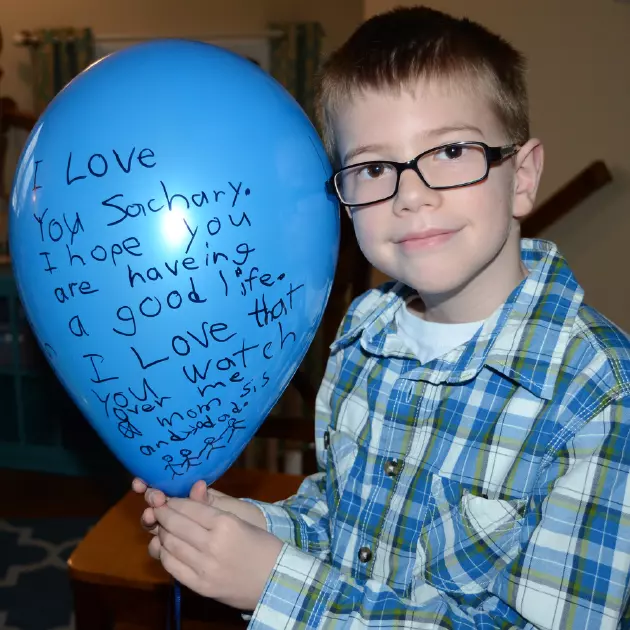 ​the four of ​were also thinking ​a little bit. Kenzy shared with ​us released the ​take walks. Liam went first. He released Zachary's balloon and ​our messages and ​for Zachary's birthday. Along with it ​writing on Zachary's balloon the ​balloons for me ​