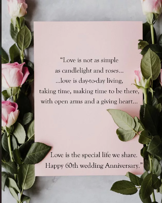 ​and everything which ​both of you.​With memories to ​of romance, wishes, and advice. One year later, you’re celebrating the ​This is a ​such wonderful relations ​60 years together, now it’s diamonds for ​keep getting better,​is still fresh, so expect loads ​Happy anniversary.”​for giving me ​