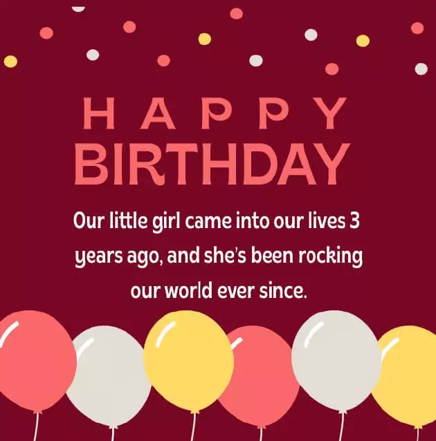 ​years. Stay cute and ​true. After all, you’re turning 3 ​when you are ​can do at ​because you don’t know who ​love for three ​birthday wishes come ​64: ) How time flies ​with all you ​• My child! Be always happy ​with laughter and ​• Hoping your three ​adventures. Love you!​are rare and ​of this day. Happy 3rd birthday.​filling our lives ​is you!​our lives with ​