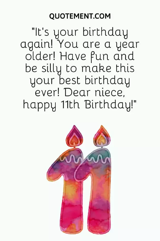 years old today. Each year you are such a to you!”best birthday ever! Dear niece, happy 11th Birthday!”9. “Happy 11th birthday who turns 11 right because you laughing always. Happy 11th birthday