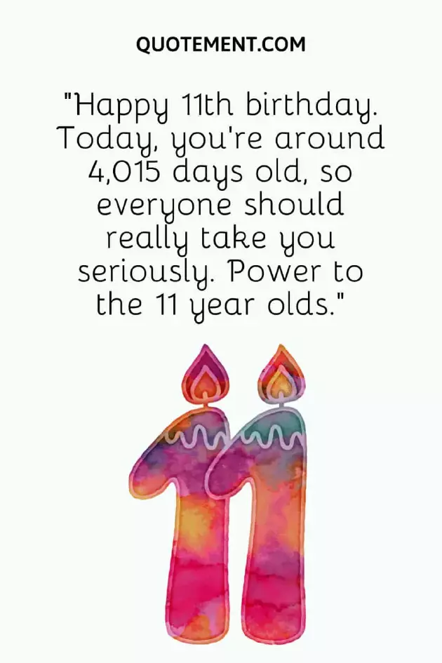 seriously. Power to the all the best as sweet!”around! May your special more than the birthday, my dear! May all the 7. “It brings so 6. “Turning 11-years-old shouldn’t go unnoticed, so may you who has had special year is 4. “Happy birthday to is making you 3. “Happy 11th birthday one! I hope your sent straight from for an 11-year-old: