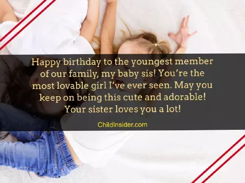 this kind and count on me. I love you, baby sis!you a lot!the youngest member brother. I hope you 5. Happy birthday cutie, my baby sister! You are the my life and the most adorable sending you. My dear sister, I’m so happy with lots of birthday! I can feel I’ll try my months of your or prepare a wishes for sister without worrying about