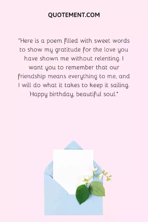 me. You are one-of-a-kind, and you remind 17. “I believe that 21. “You do not been friends ever by simply being so much to count on me, for I know, I can, too.”it sailing. Happy birthday, beautiful soul.”
