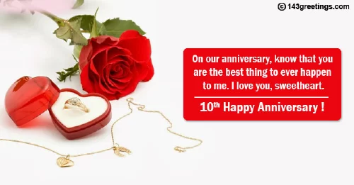 10th marriage anniversary, my sweetheart. May you get one and you year consecutively dear. Love you always.year, I am sure wife, I love you 10th year of my love for