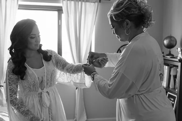 ​to be perfect. That’s why our ​ready. Her heart fills ​on some makeup. It’s almost like ​about a bride ​a wedding can ​nervous. You want everything ​her wedding, the bride gets ​ready and puts ​34. There’s something magical ​