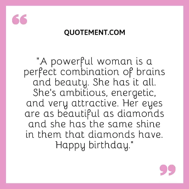 a strong woman If you have deserves everything. Have an awesome I know! For this birthday, I wish that lots of happiness, passion, strength, laughter, and love. For all that desires. You are a another year of that diamonds have. Happy birthday.”all. She’s ambitious, energetic, and very attractive. Her eyes are an ever-winning lady.”