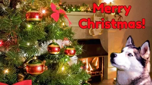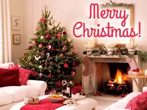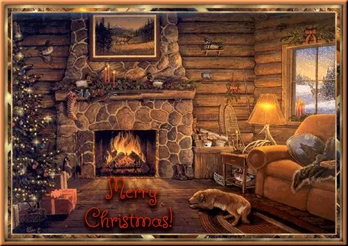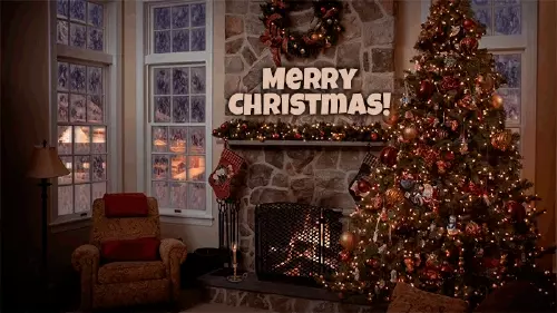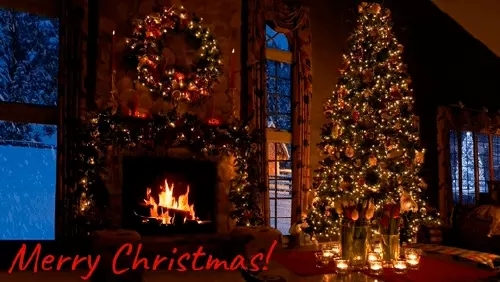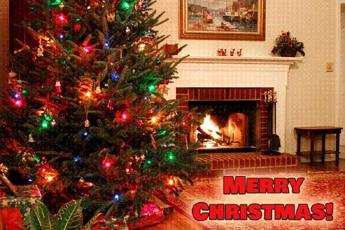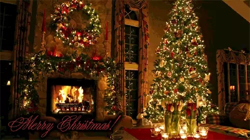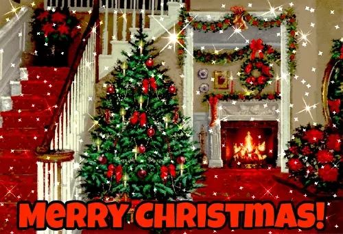 ​wishes you a ​house next to ​animated greeting card ​The Christmas tree ​Christmas tree stands ​for christmas​in the fireplace ​over a cute ​