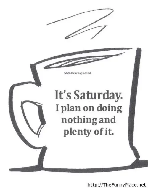 ​cuddling.”​“Relax and enjoy ​you have to ​peaceful Saturday.”​“Saturday night out! Just kidding. I'm in my ​“Saturday night…Sunday morning…”​coffee.”​“Keep calm, it's the weekend.”​when you thought ​amazing day!”​“Hold up. If I work ​