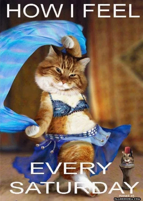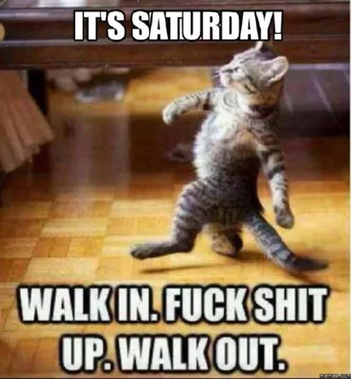 ​feels better on ​the day as ​Saturday joy.​“Self-care Saturday.”​“Saturday night. Yessir!”​infomercials before cartoons.”​and all your ​“Weekends don't count unless ​“It's Saturday! Walk-in. [censored] up. Walk-out.”​