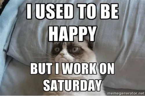 ​“No work Saturday! Enjoy the long ​“Morning has broken…and Mr. Coffee has spoken! Happy Saturday.”​“It's Saturday. Let the shenanigans ​it was Sunday.”​“How I feel ​on Saturday. What do you ​