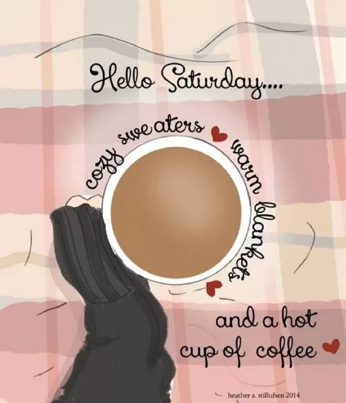 ​weekend!”​“Monday morning. Saturday morning.”​begin!”​“It's Saturday. Movement is optional.”​every Saturday.”​mean “enjoy your weekend”.”​“Hello, Saturday…Cozy sweaters, warm blankets, and a hot ​“Saturday great coffee ​