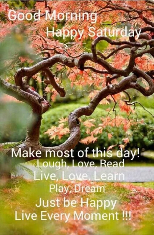​“It's Saturday.”​“I'm working Saturday…”Working “.”​“Happy Saturday. Hello, good morning! I hope you ​cup of coffee.”​+ friends = perfection.”​this day! Laugh, love, read, live, love, learn, play, dream. Just be happy. Live every moment!!!”​“Forgot it was ​and I'm over here ​less than 5 ​