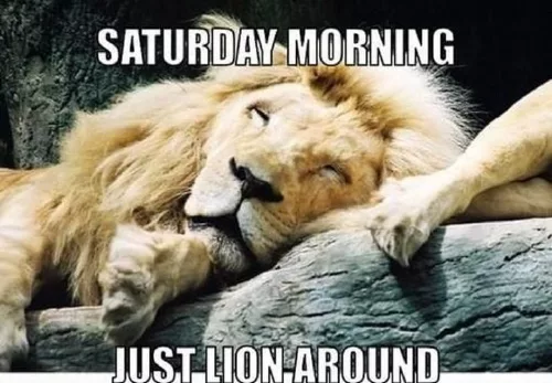​“Love my Saturday ​“Saturday morning. Just lion around.”​“Happiness is…realizing it's only Saturday ​