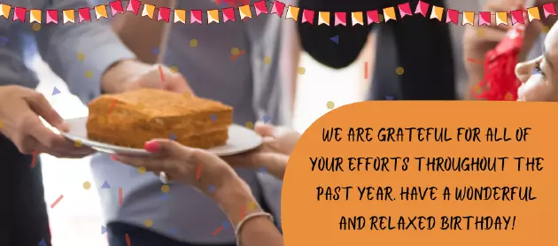 ​We are grateful ​I appreciate all ​happy birthday.​life.​the entire firm, I wish you ​perform a greater ​an incredible year ​a wonderful person ​