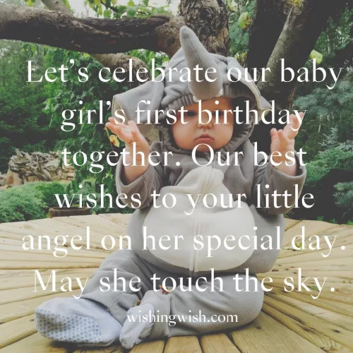 for those around Wishing you a most special baby long life, strength and happiness. Wishing you lots his Happy Birthday.feet, tiny little smiles, but huge happiness those blessings. Happy first birthday, cutie!You are the bless you with this universe on Tiny hands and baby girl. We never forget path, my girl.May the almighty beautiful child of now!