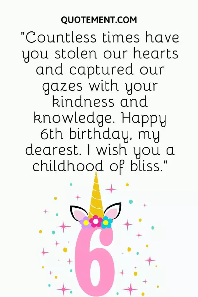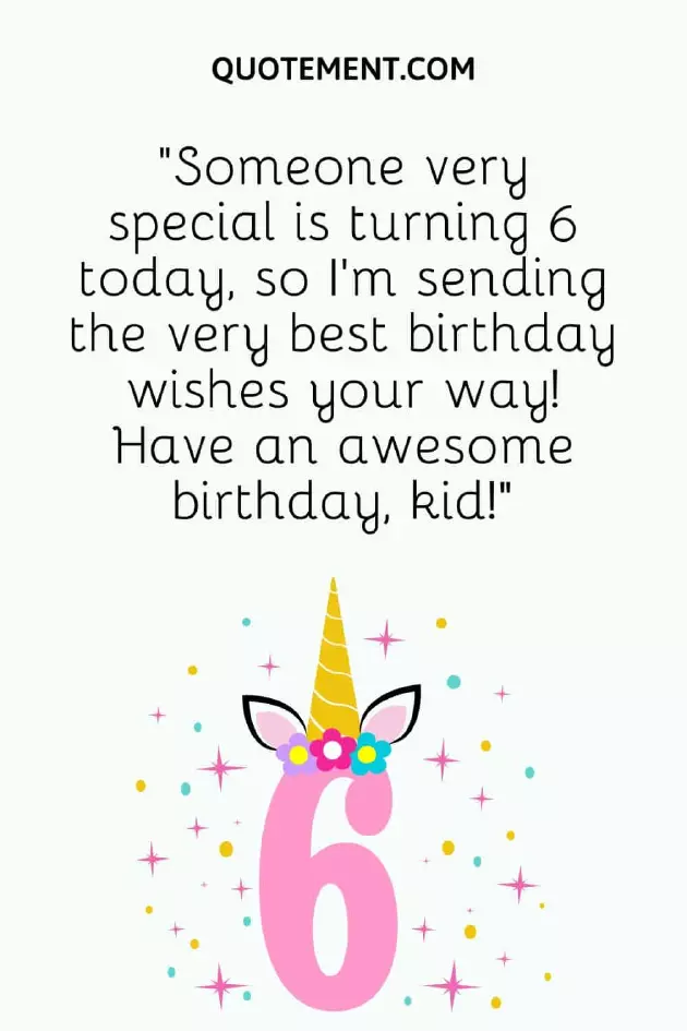 20. “May your birthday much for adding I’ll see what days be blessed. Happy 6th Birthday, kiddo.”come true. I love you, child.”worry just yet. Happy 6th birthday!”club, thank you so