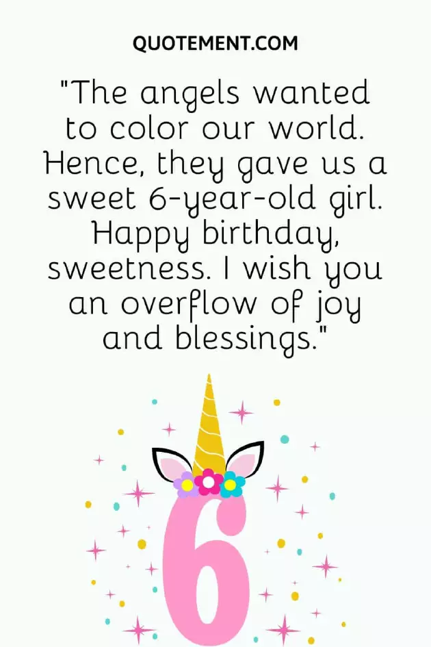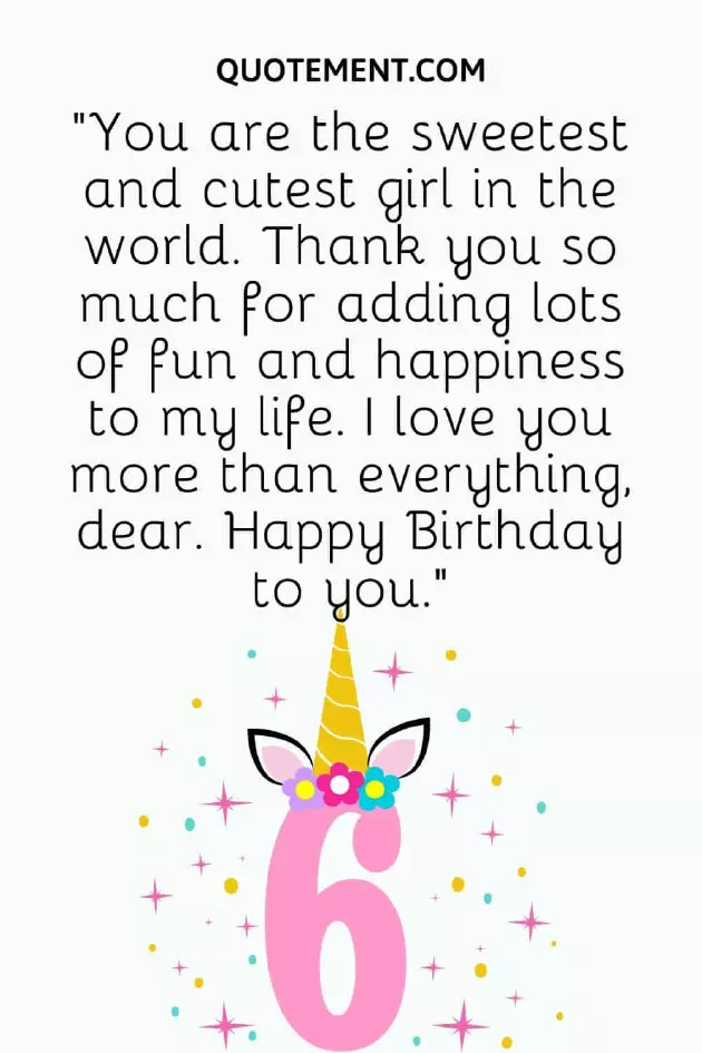 to you is cake be smothered all the happiness I can do. Happy 6th birthday, my little sweetheart!”10. “Six years may 2. “A 6-year-old girl running