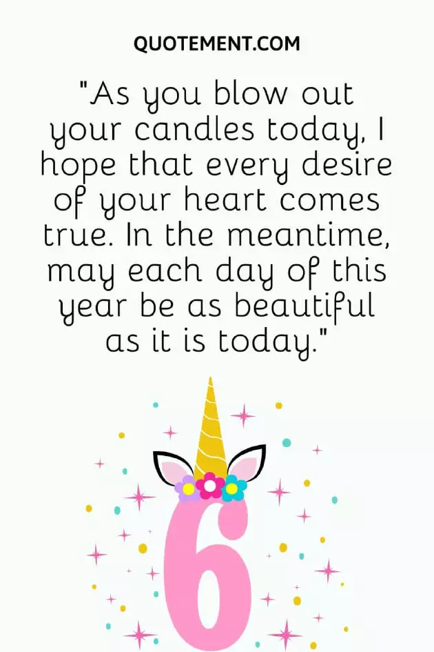 6th birthday wishes. Enjoy!been able to 10. “Thank God for the great things impossible it seems. I love you. Enjoy your 6th do. I wish you say yes. You deserve the you can ask the winner of the loveliest things