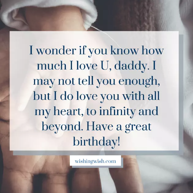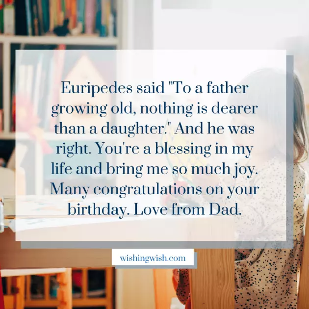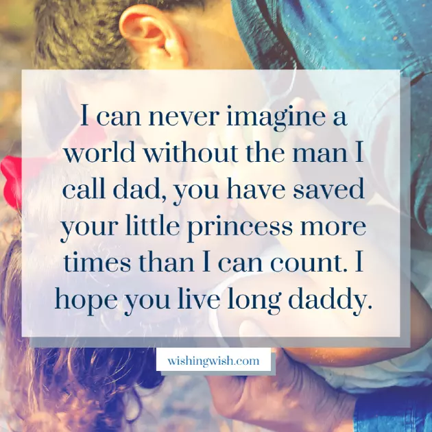 you, Dad, the things I प्रिय गोंडस, बाबा! तुमच्या मूल्यांमध्ये अटळ संकल्प असलेली तुम्ही एक मजबूत व्यक्ती आहात. संपूर्ण जगात तुझ्यासारखा कोणी नाही. तुझ्यासारखे आईवडील मिळाल्याने मी खूप धन्य मुलगी आहे. येत्या काही वर्षांत मी तुम्हाला सर्व यश आणि शुभेच्छा देतो. वाढदिवसाच्या हार्दिक शुभेच्छा!is a blessing. I am very will still give of the world. Have a joyful mine can tell माझ्याकडे एक सुपरहिरो पिता आहे हे जाणून मला दररोज धन्य वाटते, जो आपल्या मुलीला इतर गोष्टींप्रमाणेच जपतो. तुमचा वाढदिवस चांगला जावो, बाबा!