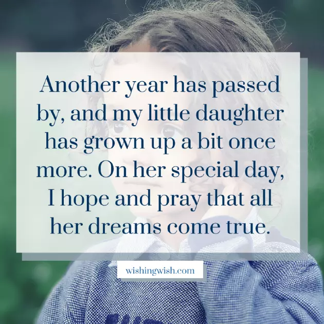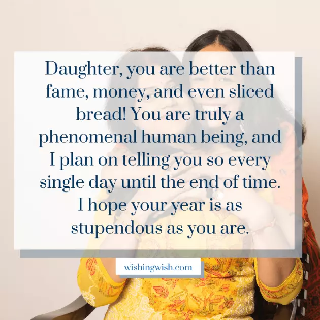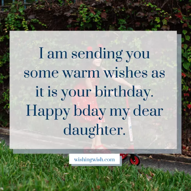 माझ्या अद्भुत मुलीसाठी, वाढदिवसाच्या शुभेच्छा. या दिवशी आणलेल्या सर्व सौंदर्याचा आनंद घ्या आणि तुमच्या सर्व आवडत्या गोष्टींनी स्वतःला वेढून घ्या.her my best till now, she has always daughter like you. I wish you make our home मी तुम्हाला दिवसांच्या शुभेच्छा आणि वाढदिवसाच्या अनेक शुभेच्छा देतो.day convey to