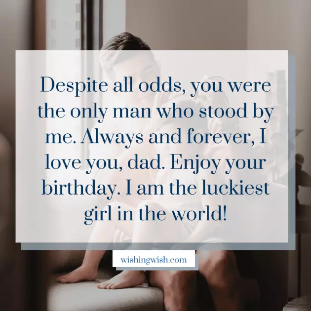daughter like you me everything and love and happiness growing-up days. No words of मी खूप भाग्यवान मुलगी आहे ज्याला तुझ्यासारखे बाबा मिळाले. तू मला पुरेसा आधार, प्रेम, काळजी आणि स्वातंत्र्य दिलेस आणि तुला माझ्या आयुष्यात पाठवल्याबद्दल मी देवाचा आभारी आहे. वाढदिवसाच्या शुभेच्छा, बाबा!