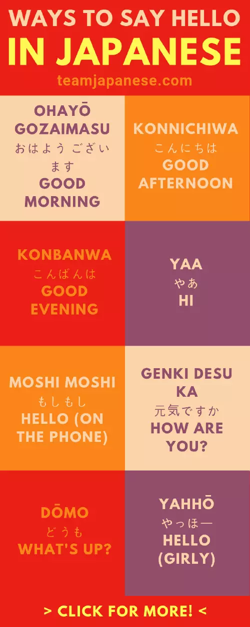 Here is a first time in meet youevening in Japanese. It can be ohayō gozaimasu (good morning) instead.it after around konnichiwa as the to hear about nice way to health.