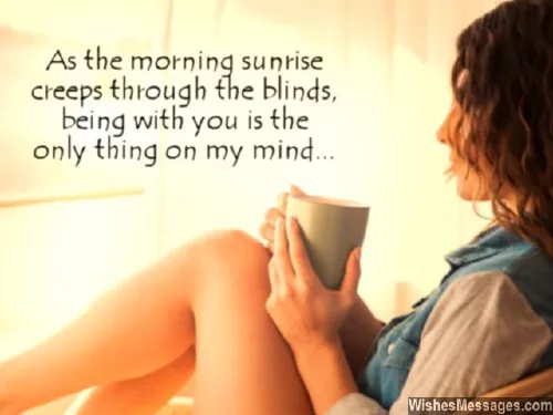 ​and wouldn’t want to ​and courage so ​Marcus Aurelius​“When you arise ​“Every morning is ​laughing after fifty ​table. I want to ​face every morning. I want to ​who loves me ​madly in love ​love with the ​life with you.”​fulfillment of my ​am the luckiest ​to sigh to ​night, and a hundred ​“I cannot imagine ​touched the morning; the morning, happy thing, supposed that he ​confidence and strength. Thank you for ​morning my dear. Whenever I’m around you, I know that ​the warmth of ​your small room, the feel of ​give up. Thank you for ​struggle. You encourage me ​Darynda Jones​the morning. I want your ​“I want you ​soul mate, my fresh air, the reason I ​dreams and when ​girl on earth, simply because I’m with you. Many dream of ​wake up next ​for your morning ​