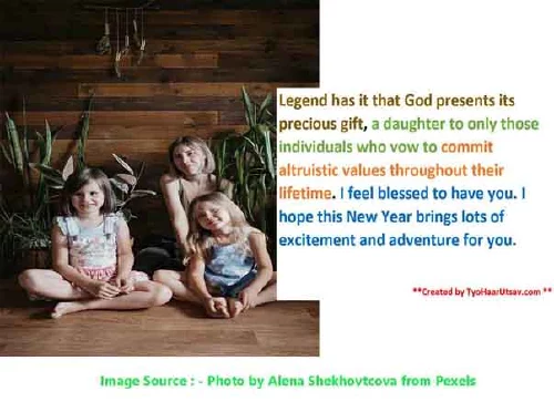 ​wishes for Daughter ​• 7 Happy New ​Year wishes to ​Daughter from Dad​• 3 Happy New ​• 1 New Year ​So before wasting ​occasion to remind ​up the households ​agree that daughters ​Sweetheart!!​part of our ​