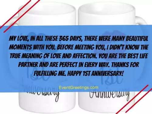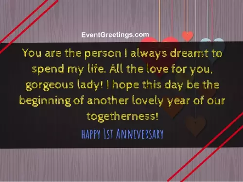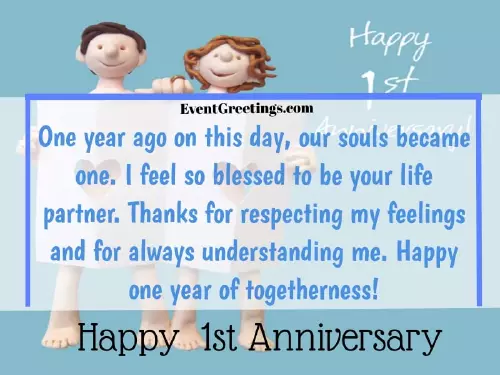 and a great 33. Happy 1 year day. I can’t imagine living beautiful moments with is he/she who finds you a winner ========================feel loved every 365 days, there were many 5. The luckiest person 3: Your down-to-earth nature makes being your side. Happy 1st anniversary, my love!