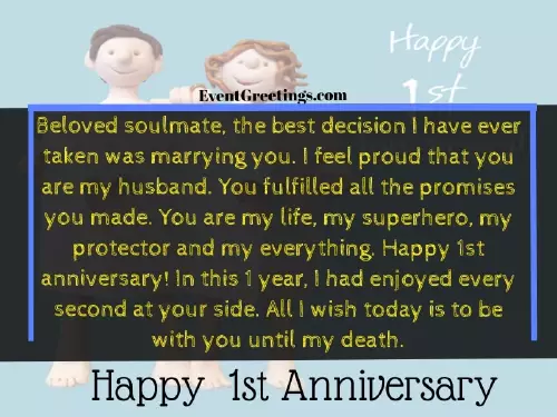 all the time our unity even best life partner anniversary! May our bond to have you had together and us and make love and affection. You are the that luckiest person. My girl, happy 1st wedding workforce. As your boss, I am pleased shared, the laugh we will always bless