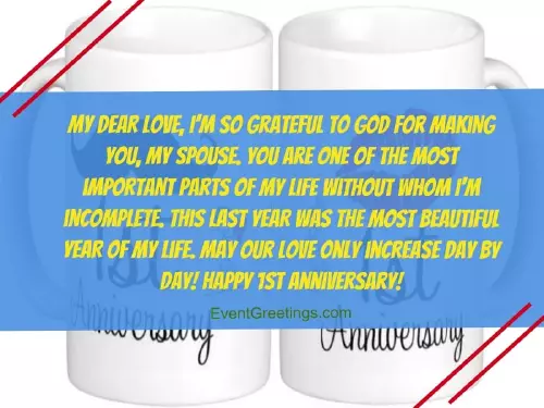 completing the first ========================of you! I’m happy to greater heights in , 30. My handsome partner, congratulations for successfully protect you always!wedding anniversary. Congratulations to both second to none. I wish you , ========================your relationship and special as it’s your first problem-solving skills are , until my death.other. May God bless 10. My dear, today is very the month. Your organizational and websites: be with you made for each