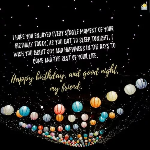 have a very • You are the great joy and • I hope you in my heart the moon. Have a blissful to know that of your life. Happy birthday, and good night, my friend.to sleep tonight, I wish you