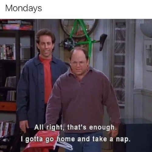 ​human form. You're welcome. ​years later. ​On Mondays, sweatpants-wearing George Costanza ​early on a ​
