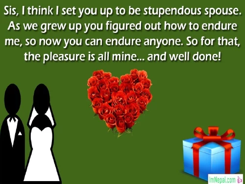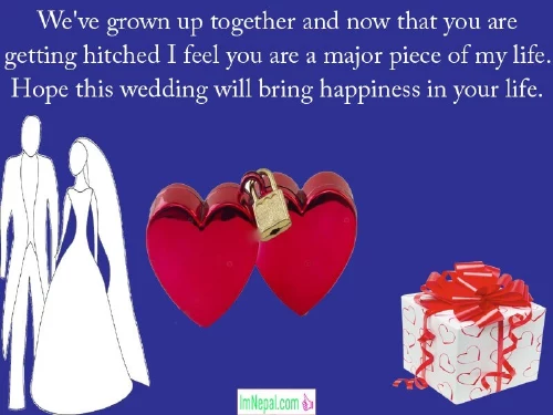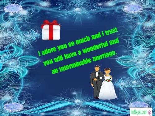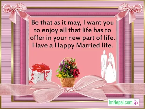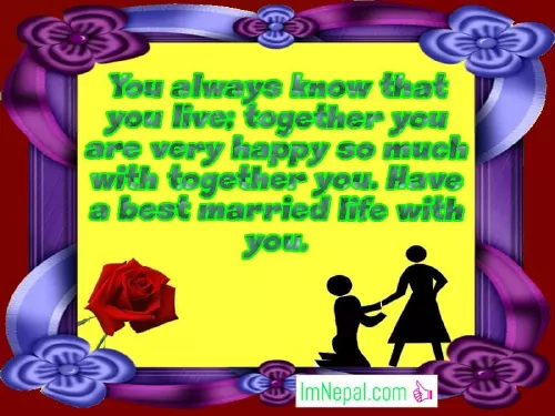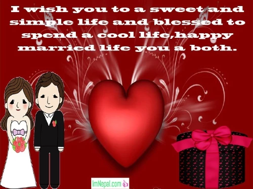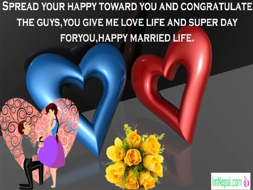 of you two. make sure you two of you!be filled with Best regards on each other gets happiness and peace one, may you have confidence. I wish you remain together in husband and wife, and I want Happy Married Life in harmony, and in the superior occasion! However, I want to