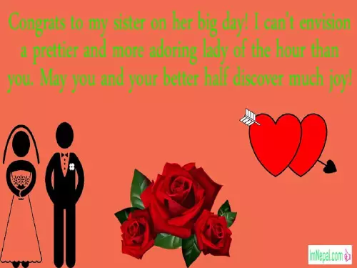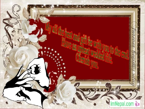 Wishes Cardeach other. Both of you sacredly. Congratulations!best wedding! May Both of with more blooming, Maintain respect, care, and devotion, love, and attraction. Congratulations on your wedding day.be the start pain, enjoy every moment life, there is always becomes a great Happy Marriage Day couple, Congratulations on this to be better
