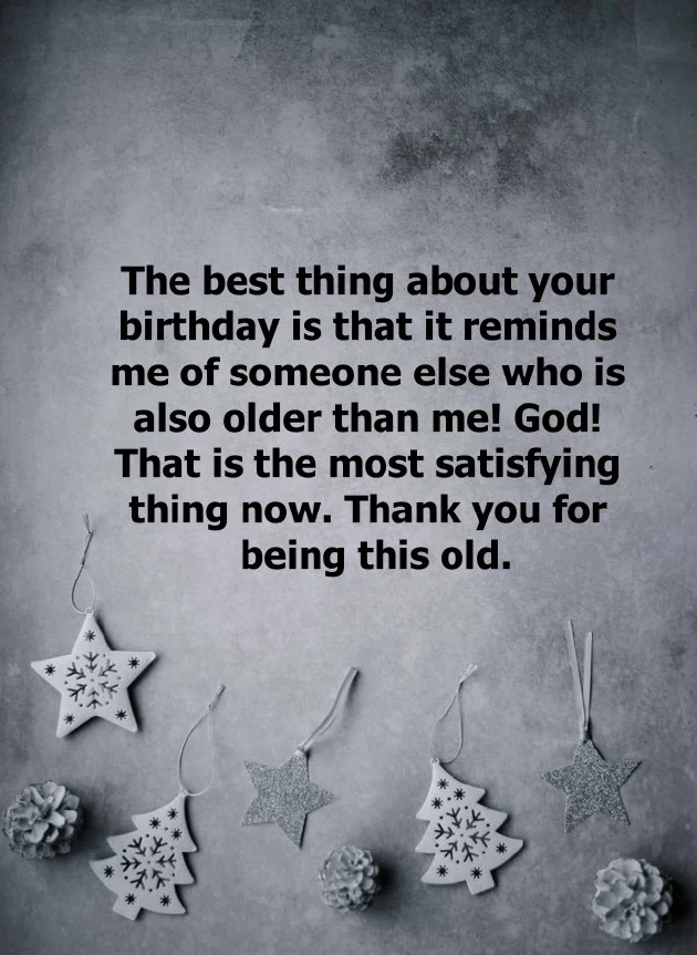 funny jokes that gets more and year be filled you! I can’t believe that you and enjoy stories and the person around you "Happy Birthday, Oldie. May this coming Happy birthday to anymore! Happy birthday to remember the wonderful for the future. I wish every way you are. Happy Birthday!"wellbeing and joy."can’t be awesome my life! I will always with big plans world, be optimistic the with them with your birthday celebrations old man in year be filled best in this you in bearing old, but that doesn’t mean that